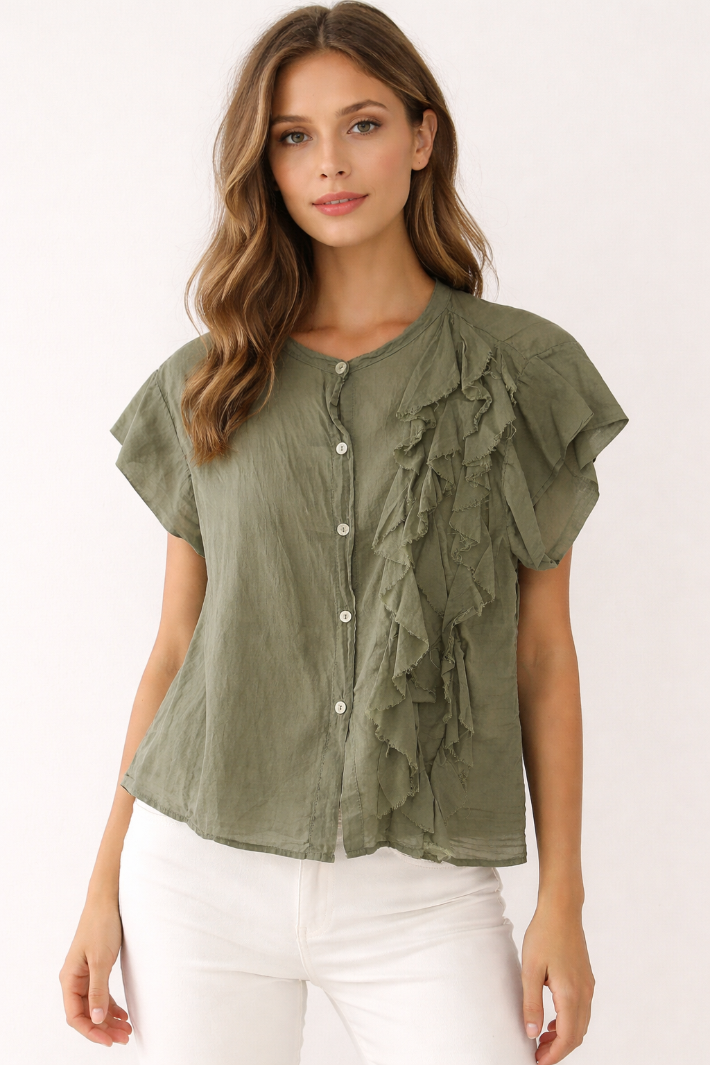 Cotton Frill Top Green S/M