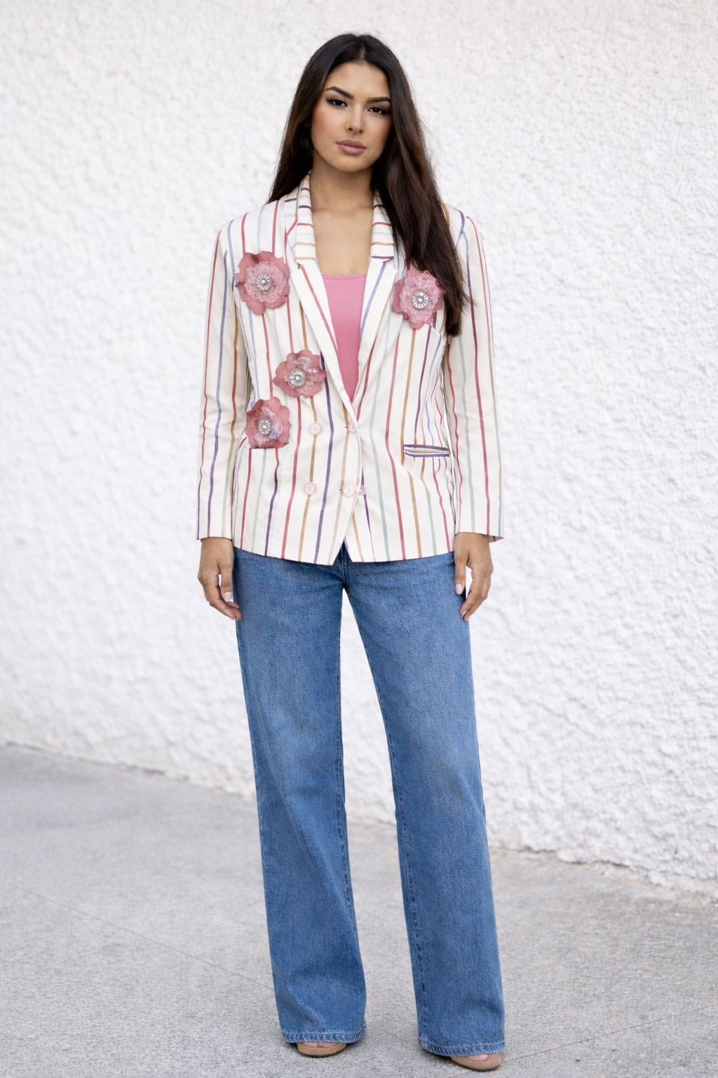 Create an accountEmbellished Double Breasted Striped Jacket