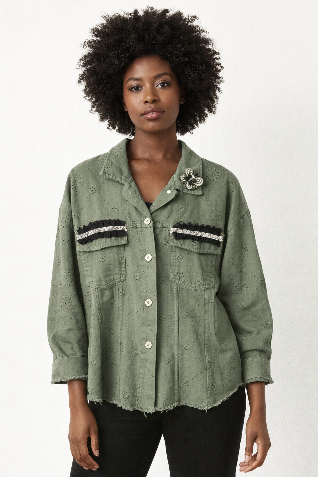 Lace Embellished Jacket Army Green 0/S