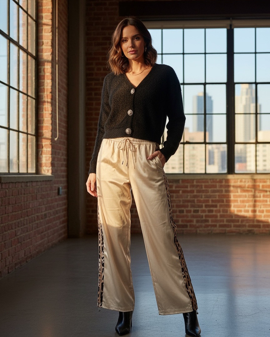 Satin Animal Trim Pants