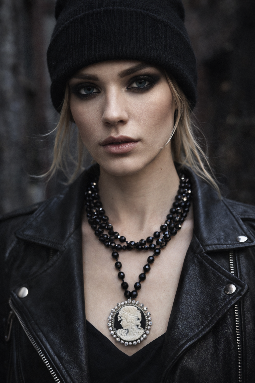 Vintage Black Agate Necklace w/Cameo G005